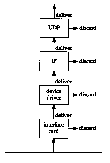 Each time UDP receives a datagram from IP, it performs filtering based on the destination port number, and sometimes the source port number too. If no process is currently using the destination port number, the datagram is discarded and an ICMP port unreachable message is normally generated. (TCP performs similar filtering based on its port numbers.) If the UDP datagram has a checksum error, UDP silently discards it.