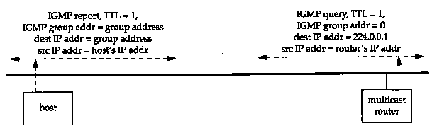 In Figure 13.3 we noted that the TTL field of the reports and queries is set to 1. This refers to the normal TTL field in the IP header. A multicast datagram with an initial TTL of 0 is restricted to the same host. By default, multicast datagrams are sent with a TTL of 1. This restricts the datagram to the same subnet. Higher TTLs can be forwarded by multicast routers.