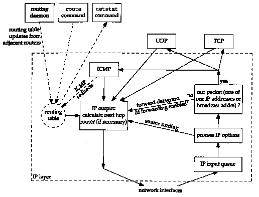 Routing is one of the most important functions of IP. Figure 9.1 shows a simplified view of the processing done at the IP layer. Datagrams to be routed can be generated either on the local host or on some other host. In the latter case this host must be configured to act as a router, or datagrams received through the network interfaces that are not ours are dropped (i.e., silently discarded).
