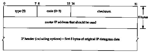 There are three IP addresses that the receiver of an ICMP redirect must look at: (1) the IP address that caused the redirect (which is in the IP header returned as the data portion of the ICMP redirect), (2) the IP address of the router that sent the redirect (which is the source IP address of the IP datagram containing the redirect), and (3) the IP address of the router that should be used (which is in bytes 4-7 of the ICMP message).