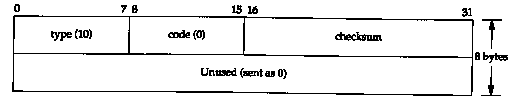 The ICMP "host unreachable" error message is sent by a router when it receives an IP datagram that it cannot deliver or forward. (Figure 6.10 shows the format of the ICMP unreachable messages.) We can see this easily on our network by taking down the dialup SLIP link on the router sun, and trying to send a packet through the SLIP link from any of the other hosts that specify sun as the default router.