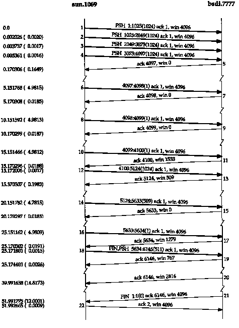 | 21 | 28.356178 ( 0.0040) | svr4.5555 > bsdi.1027: . ack 9217 win 0 |