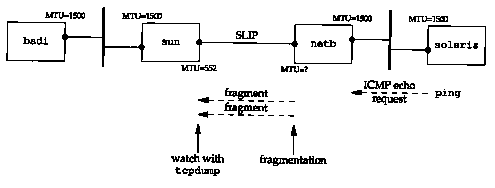 Figure 11.4 shows the output to and from three different systems on our test network (see the figure on the inside front cover). We ran our sock program (Appendix C), sending a single UDP datagram with 9 bytes of data to the standard echo server.