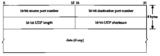 UDP is a simple protocol. Its official specification, RFC 768 [Postel 1980], requires only three pages. The services it provides to a user process, above and beyond IP, are port numbers and an optional checksum. We used UDP to examine this checksum and to see how fragmentation is performed.